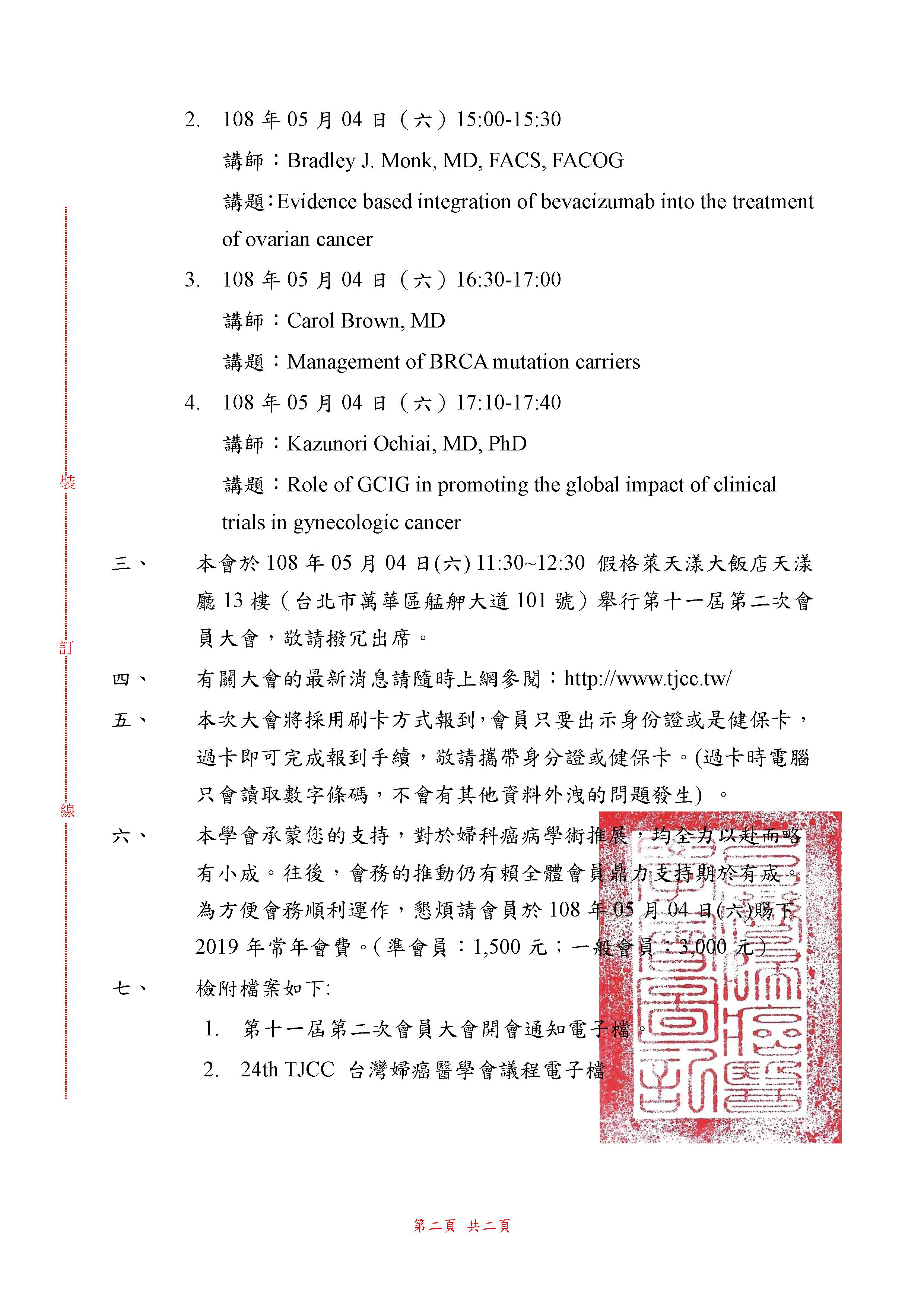 20190504 第二十四屆台灣癌症聯合學術年會暨第十一屆第二次會員大會.開會通知